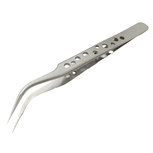 High-precision curved tweezers for delicate repair work.