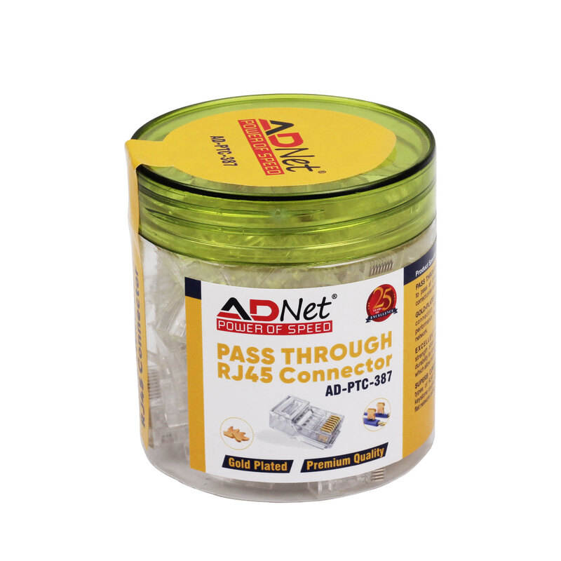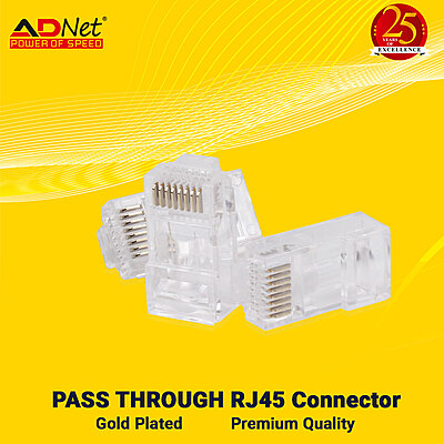 Type: RJ45 (Registered Jack 45) designed with a “pass-through” feature for Ethernet networking. Cable Compatibility: Designed for Category 6 (CAT6) Ethernet cables, supporting Gigabit Ethernet (1 Gbps) and short-distance 10 Gigabit Ethernet. Configuration: 8P8C (8 Position, 8 Conductor), standard for Ethernet, utilizing all 8 wires. Packaging: Sold in a convenient 100-piece pack. Contacts: Typically features gold-plated contacts